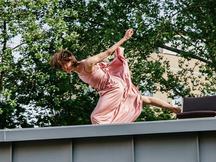»oh, ewige wiederkehr! die cie. toula limnaios glänzt mit versöhnlicher leichtigkeit. in „momentum“ begegnet sie erstarrten alltagsroutinen. weniger intensiv als sonst geht es dabei trotzdem nicht zu. im kampf gegen sich selbst und die anderen reiben sie sich auf an der sehnsucht nach mehr freiheit, leidenschaft und intensität. es sind bilder voller macht und ohnmacht, die limnaios hier nebeneinanderstellt.« (tanzraumberlin.de, christine matschke)